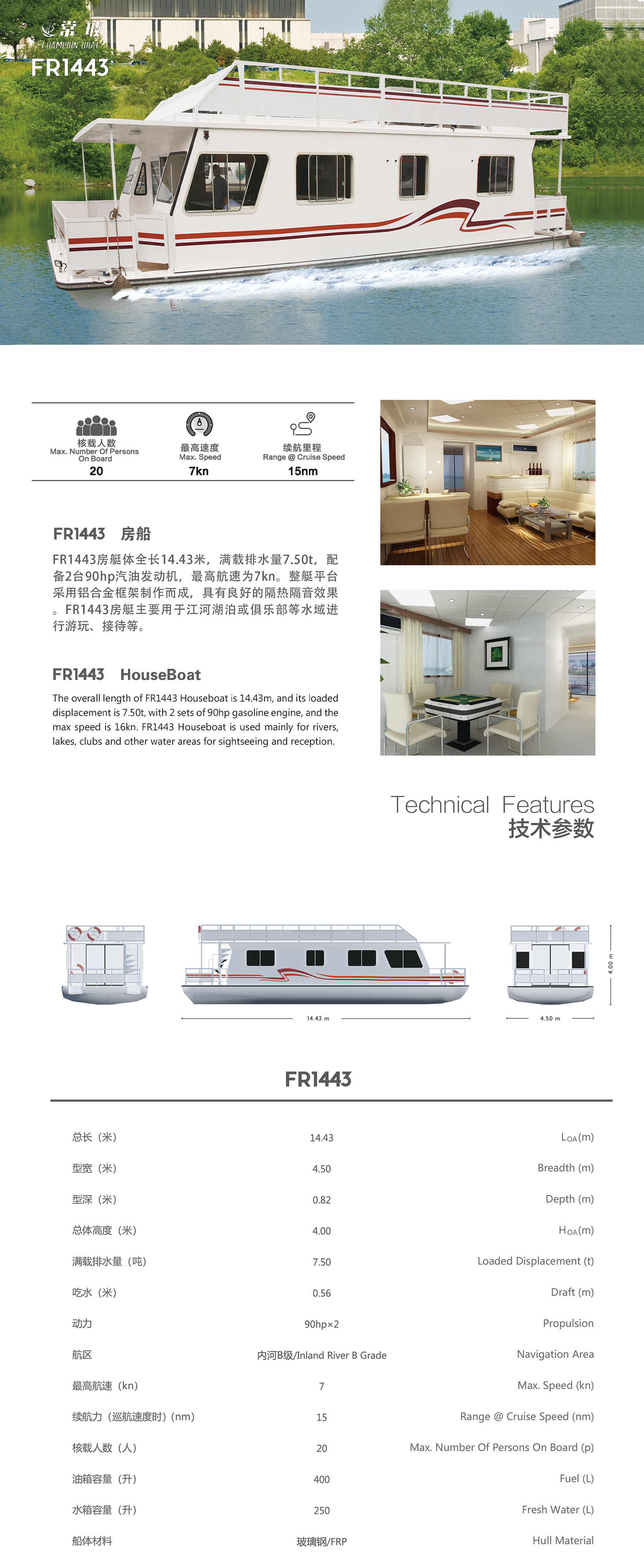 | 總長: | 14.43m | 航區(qū): | 內(nèi)河B級/Inland River B Grade |