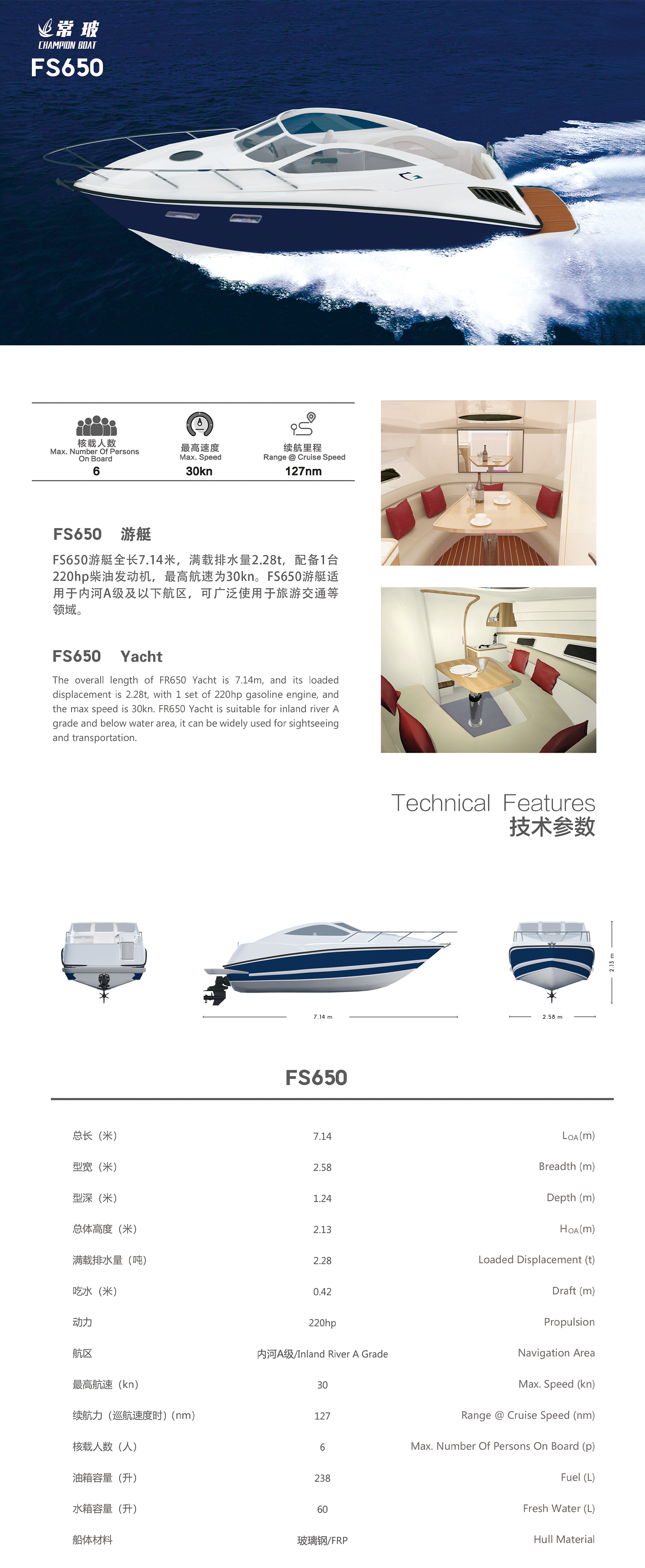 核載人數: 6人 主體材料: 玻璃鋼/FRP