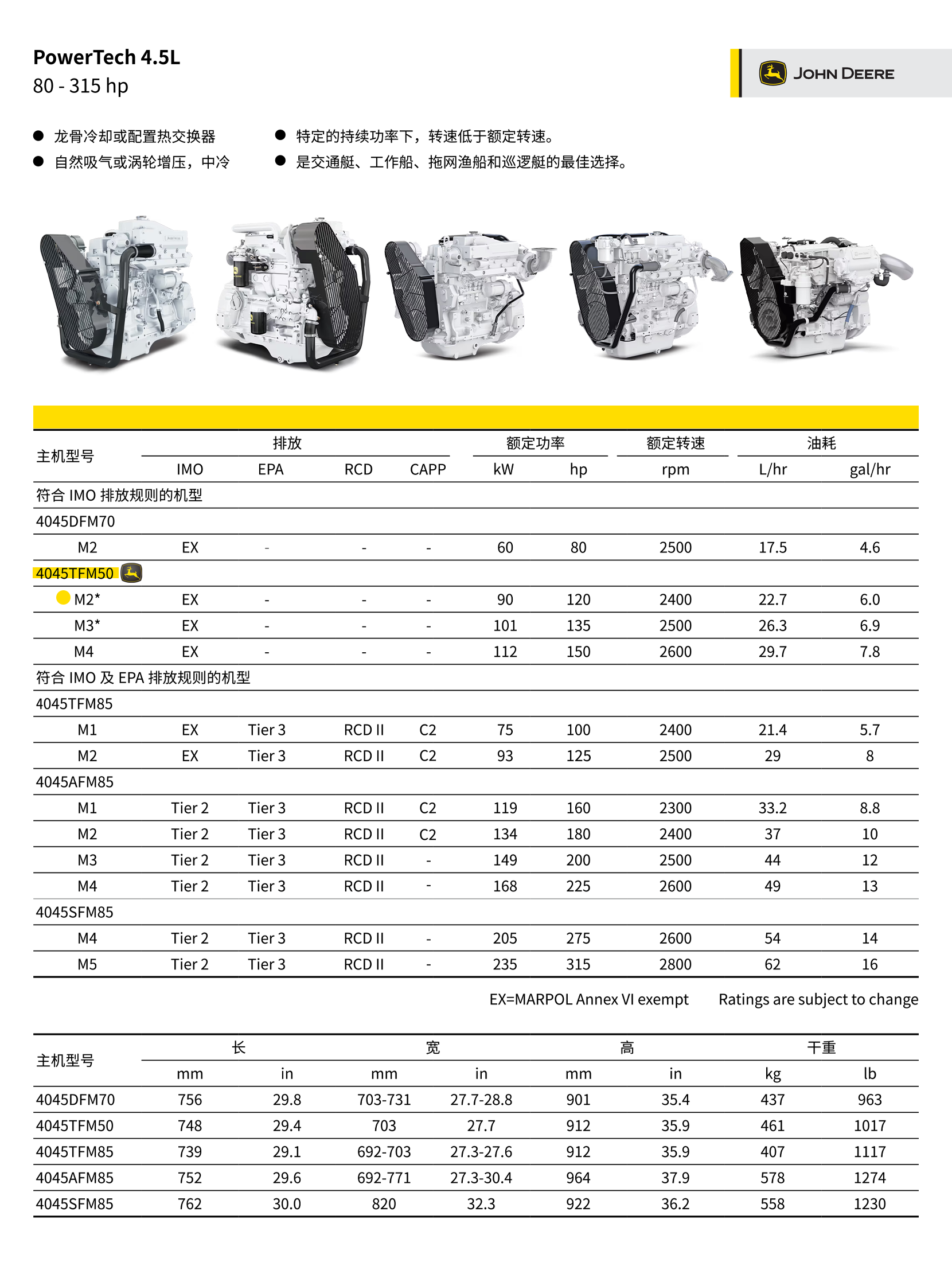 | Power Tech 4.5L系列90KW船用發(fā)動機 | |||