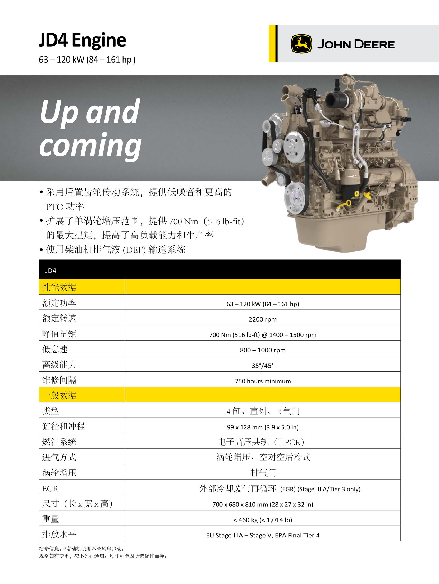 | 排放標(biāo)準(zhǔn): | EU Stage III A – Stage V/Tier 4 | 重量: | 460kg |